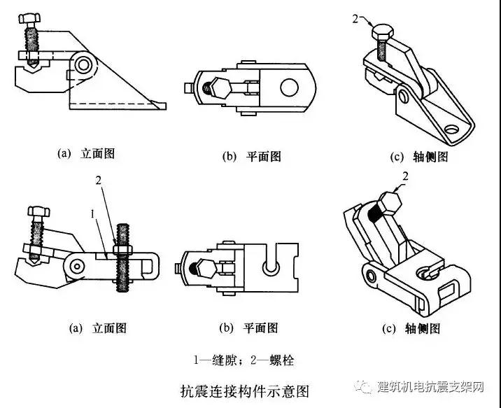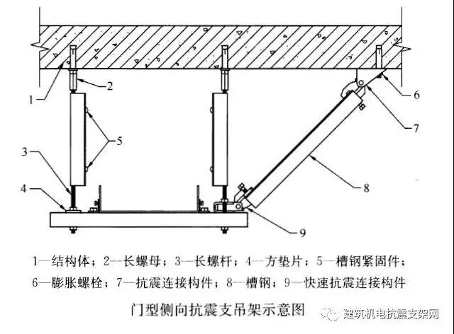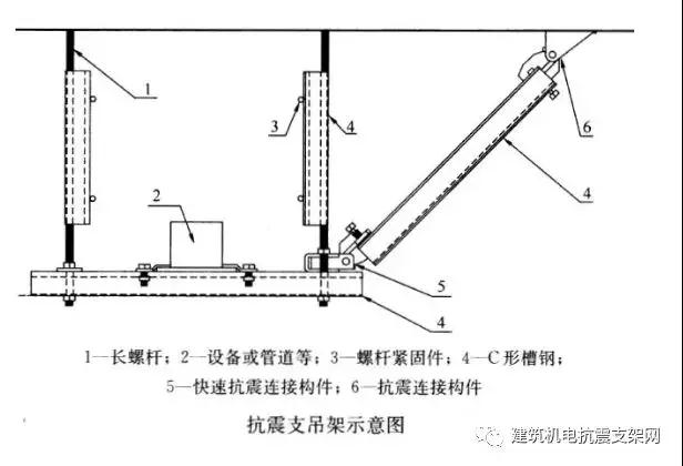 依據(jù)GB50981-2014《建筑機(jī)電工程抗震設(shè)計(jì)規(guī)范》,抗震支吊架是由錨固件、加固吊桿、抗震連接構(gòu)件及抗震斜撐組成。組成抗震支吊架的所有構(gòu)件應(yīng)采用成品構(gòu)件,連接緊固件的構(gòu)造應(yīng)便于安裝。